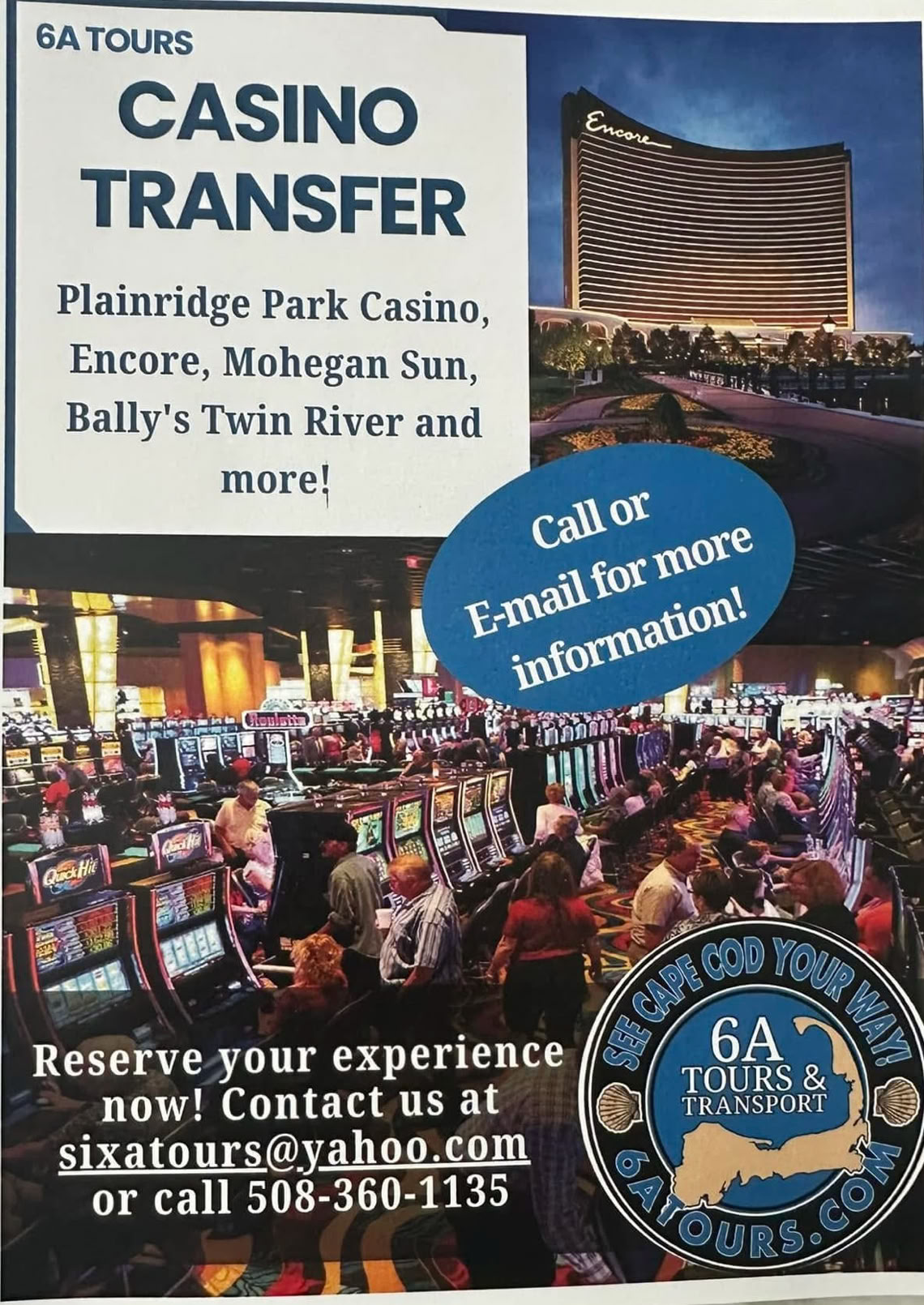 ASK about our CASINO TOUR ! Let us do the driving so you can enjoy to the max!